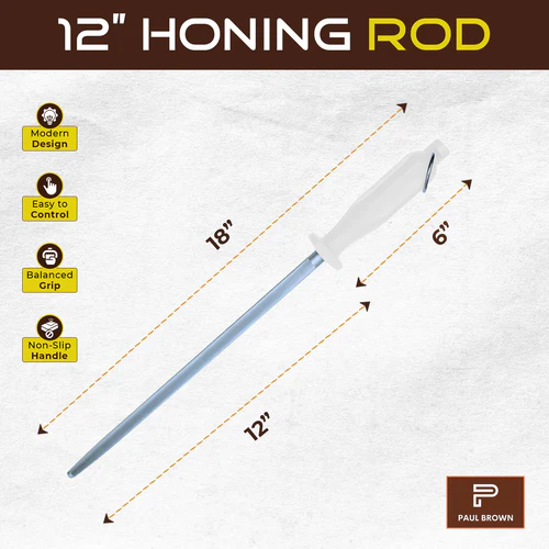 - Perfect Length: 12-inch honing rod ideal for maintaining various knife sizes with precision and control.