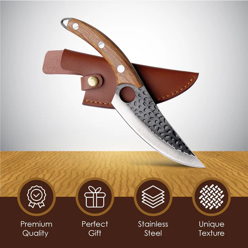 ✅ Unique Leather Sheath -- The outdoor chef knife is equipped with a practical soft leather sheath to protect the blade. You can put a belt on it for easy carrying when camping outdoors. The portable camping knife is your ideal assistant for Butchering, Fishing, Camping, and Outdoor BBQ activities.