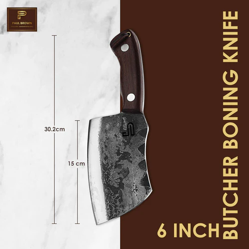 ✅ FULL TANG WOODEN HANDLE: Ergonomic Full Tang handle can make the blade comfortable to grip and non-slip effect. The kitchen cleaver butcher knife is a great beauty, impeccable performance this strong design with good strength, and durability.